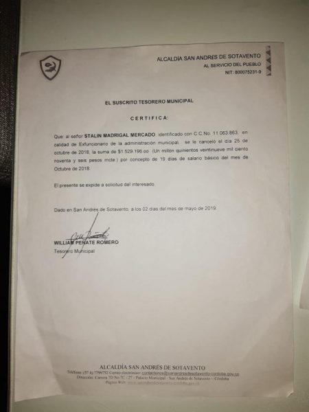 Luego de conocerse la decisión adoptada por el Tribunal Administrativo de Córdoba, sobre la presunta inhabilidad, por la que demandaron la elección de Stalin Humberto Madrigal Mercado para ejercer sus funciones como alcalde de San Andrés de Sotavento, el mandatario negó estar inhabilitado.