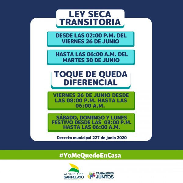 En las últimas horas la Alcaldía de San Pelayo, Córdoba, en cabeza de Harving Espitia, decretó ley seca transitoria y toque de queda diferencial durante el fin de semana festivo, con el fin de evitar la propagación del Covid-19.