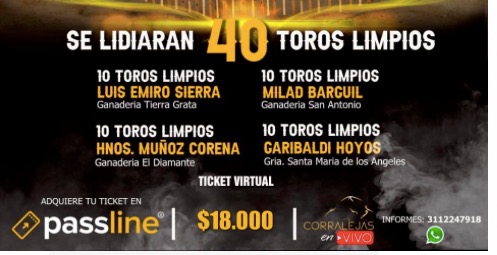 Para vivir la corraleja en el sitio en el que te encuentres, es muy fácil, sólo tienes que ingresar a passline.com, buscar ‘Primera Corraleja Virtual’ y allí compras tu puesto en los palcos, adquiriendo el ticket virtual por sólo 18 mil pesos.
