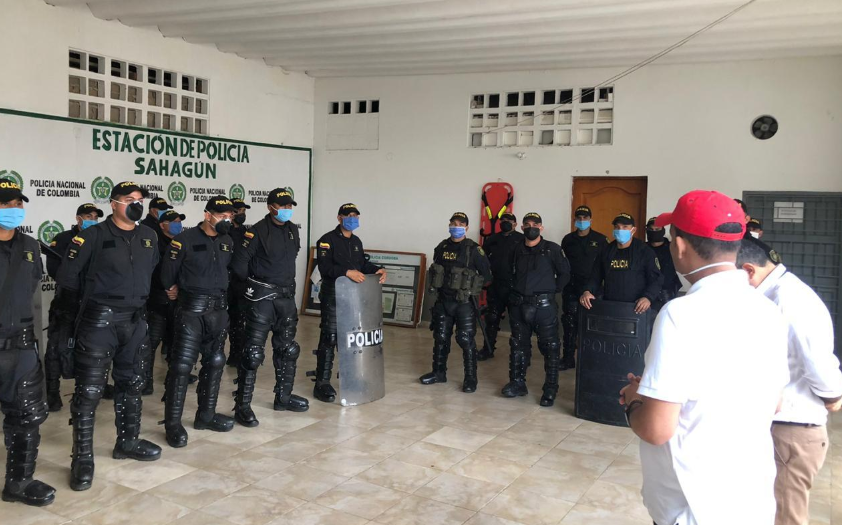En el comando central del municipio de Sahagún, Córdoba, el alcalde Jorge Pastrana Sagre, instaló un grupo del Escuadrón Móvil Antidisturbios (Esmad), para que vigilen que los ciudadanos le estén dando cumplimiento al aislamiento preventivo.