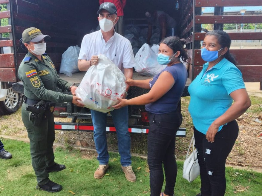 Fue así como también les fueron entregados kits de alimentación a los desplazados que se asentaron en el polideportivo local.