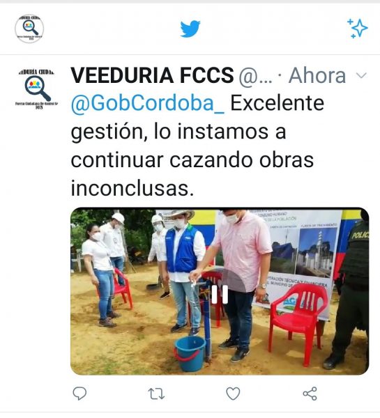 Asimismo, la veeduría FCCS le ha reconocido su buena gestión y lo insta a continuar cazando estas obras inconclusas de administraciones anteriores.