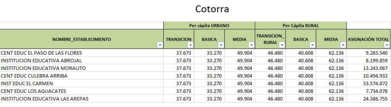 En Cotorra, otro municipio del departamento cordobés, hay instituciones que recibirán sumas hasta de 53 millones de pesos.