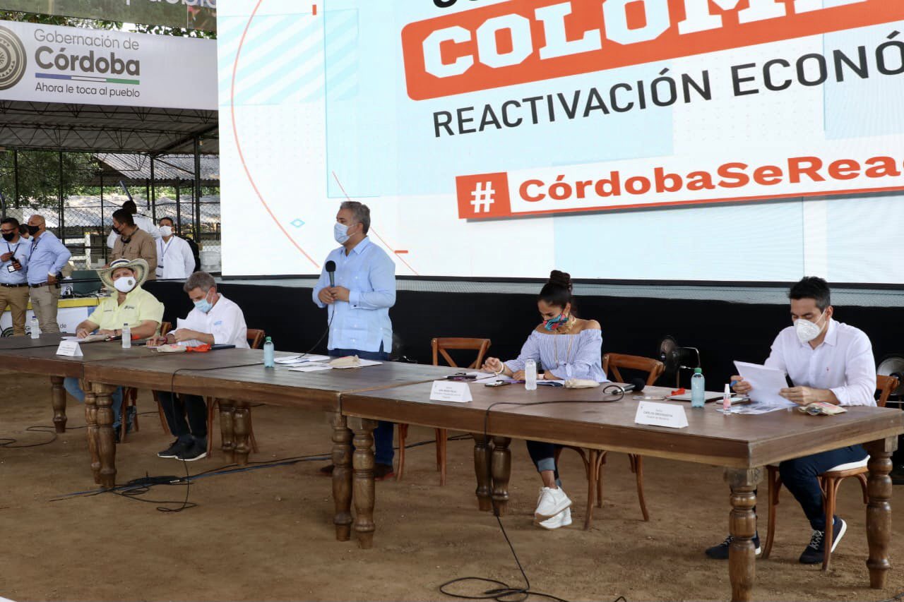 En la tarde de este sábado 7 de noviembre, en el Coliseo de Ferias Miguel Villamil Muñoz en Montería, se desarrolla la mesa de Reactivación Económica de Córdoba liderada por el presidente de la República, Iván Duque.