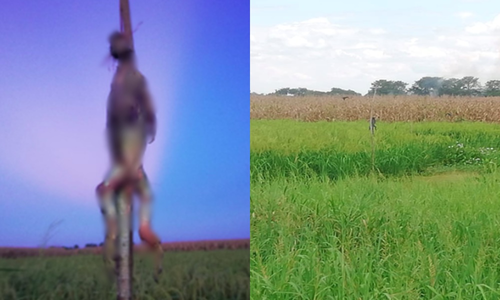 Todo parece indicar que a los agricultores se les ocurrió esta macabra idea para alejar a los pájaros, que por esta época proliferan en la zona y atacan los cultivos.