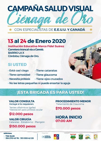 Con especialistas de Estados Unidos y Canadá se realizará una brigada de Salud visual en el municipio de Ciénaga de Oro, donde podrán ser beneficiados más 6.000 cordobeses.