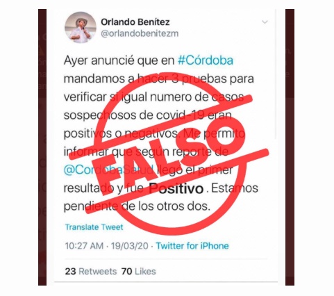 Asimismo, el funcionario aseguró que, la “comunidad cordobesa lucharemos contra la desinformación y lucharemos contra estas personas innescrupulosas que quieren crear un clima de pánico colectivo en el departamento de Córdoba desvirtuando el trabajo que estamos haciendo las autoridades sanitarias en cabeza de nuestro gobernador y los alcaldes de todo el departamento de Córdoba”.