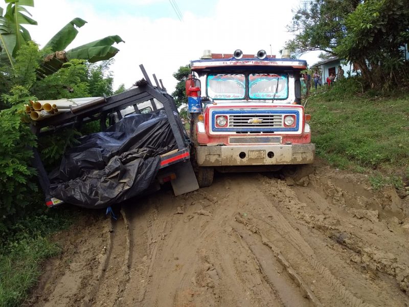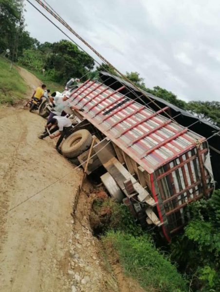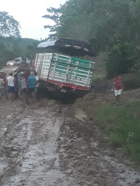 Recientemente varios vehículos que se movilizaban a la altura del kilómetro 38, quedaron atrapados en el barro, entre ellos había un bus de servicio público, un camión repartidor de gaseosas, un carro que llevaba materiales y una lujosa camioneta marca Toyota TXL.