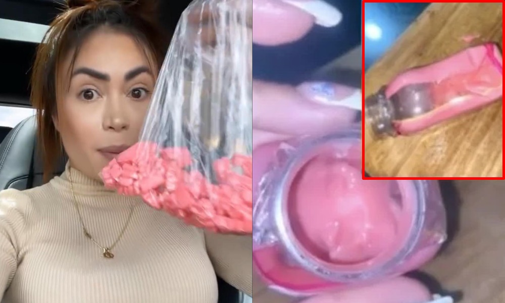 Además el producto que mostró la usuaria es diferente a la presentación que promocionó la influencers, quien enseñó ositos de goma sueltos y bien formados, sin embargo en el video dela denunciante se observa una mezcla rosada totalmente comprimida y rígida.
