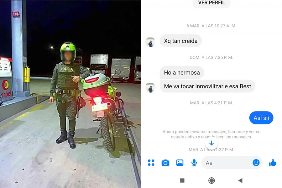 La mujer publicó en un grupo de Facebook de Aguachica, Cesar, las capturas de la conversación en la que el uniformado le dice que, “me va a tocar inmovilizarte esa Best… Mañana la dejo sin moto por creída, aquí a las mujeres les gusta es que las traten mal”.