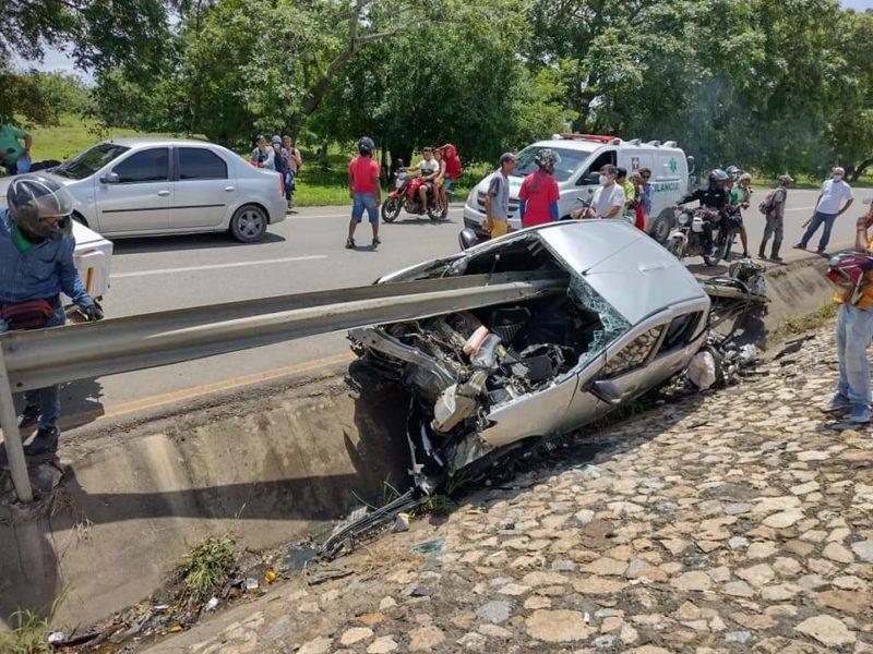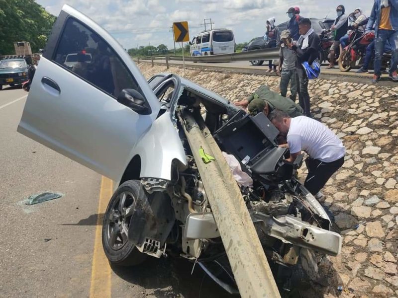 El hecho se presentó a la altura del corregimiento de Berastegui, jurisdicción de Ciénaga de Oro, cuando el conductor de un automóvil, al parecer, tuvo un microsueño, perdió el control del mismo, se salió de la vía y terminó estrellándose estrepitosamente contra la baranda.