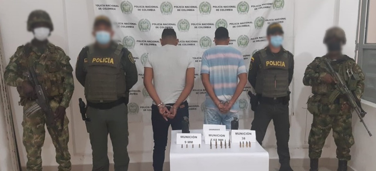 El operativo se llevó a cabo en el barrio Villa Esperanza del municipio de Puerto Libertador, allí, los uniformados lograron sorprender a los sujetos portando dos granadas de fragmentación y munición de diferentes calibres.