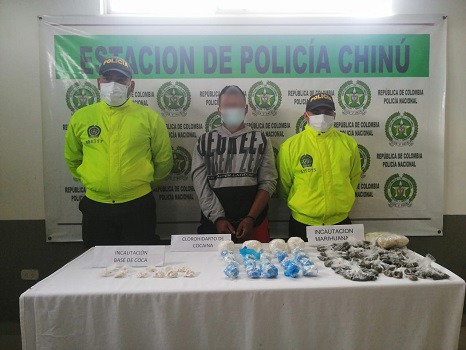 La acción policial se llevó a cabo en zona urbana del municipio de Chinú, allí, los uniformados lograron capturar a un hombre en flagrancia por el delito de Tráfico, fabricación o porte de estupefacientes.