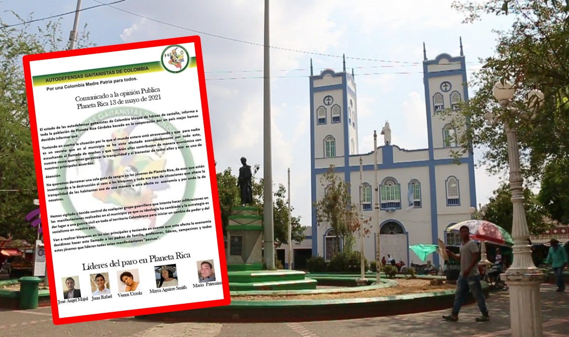 El escrito firmado por las Autodefensas Gaitanistas de Colombia, popularmente conocidas como ‘Clan del Golfo’, estaría circulando en varias cadenas de WhatsApp, donde figurarían los nombres y las fotografías de estas personas que serían líderes de las marchas en la localidad.
