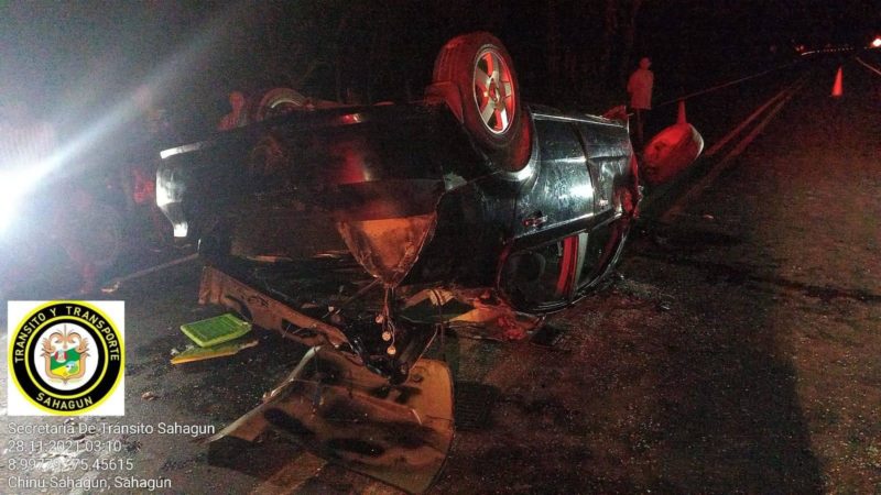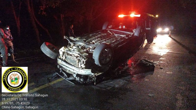 Sobre las 2:30 am, se registró un impresionante accidente de tránsito en la Troncal de Occidente, vía Sahagún – Chinú a la altura de La Asamblea, en el hecho tres personas resultaron gravemente heridas, según pudimos establecer en el vehículo Chevrolet Aveo de placa GXN 113, en el que se movilizaban cinco personas, se volcó, llevando tres de ellas la peor parte, al parecer estaban consumiendo licor.