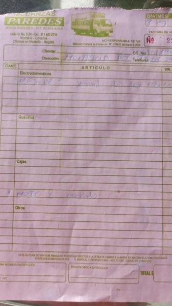 Se trataría del establecimiento Mudanzas Paredes, ubicado en la calle 41 #2-24 de la capital cordobesa, donde hace 10 días enviaron una moto XR 150, marca Honda, de placas IEQ-56F, a la capital del país, sin embargo, aún no ha llegado.