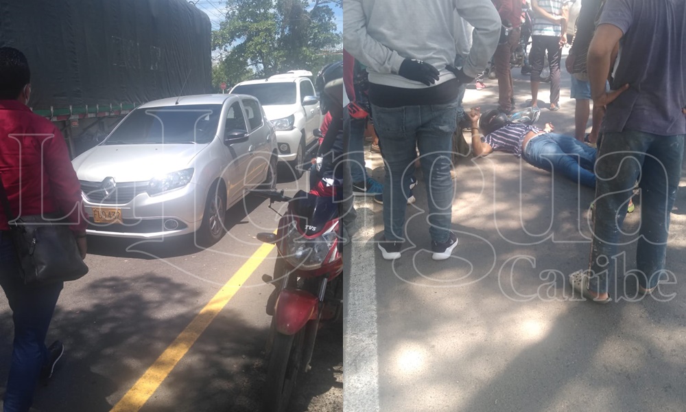 Fue así como el conductor de una motocicleta se estrelló contra los vehículos e impactó violentamente contra el pavimento.