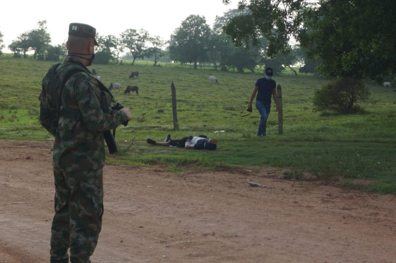 Uniformados de la Policía y funcionarios del CTI de la Fiscalía hicieron presencia en el lugar, donde verificaron que Oquendo Salgado presentaba varios impactos de bala en la cabeza, los cuales habrían ocasionado su muerte.