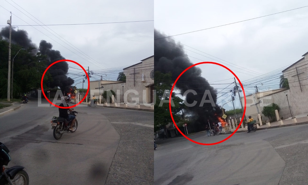 Un incendio que se registra en un lote que se encuentra abandonado y que está ubicado en la calle 22 con 9 de Montería, amenaza con extenderse a otras casas vecinas.
