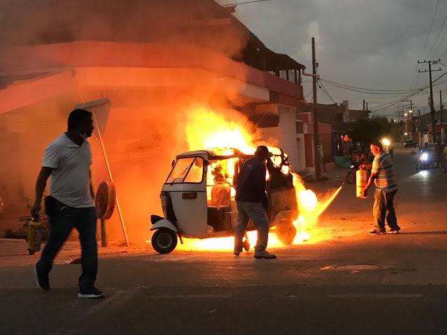 Momentos de pánico vivieron las personas que transitaban a eso de las 5:30 de la mañana de este martes 23 de febrero por la calle 18 con carrera quinta de Planeta Rica, luego de que un motocarro se incendiara de un momento a otro.