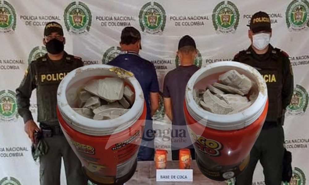 Durante un procedimiento policial en la vía que conduce el municipio de Valencia a Montería, fueron capturados dos hombres de 19 y 28 años quienes trasportaban más de 700g de coca encaletado en tarros de Chocolisto.