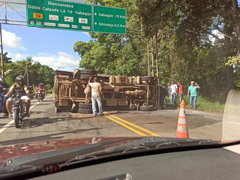 Un conductor perdió el control de su vehículo y se volcó sobre el inicio de la doble calzada que comunica al corregimiento de La Ye con Sahagún, hacia el mediodía de este martes 02 de noviembre.