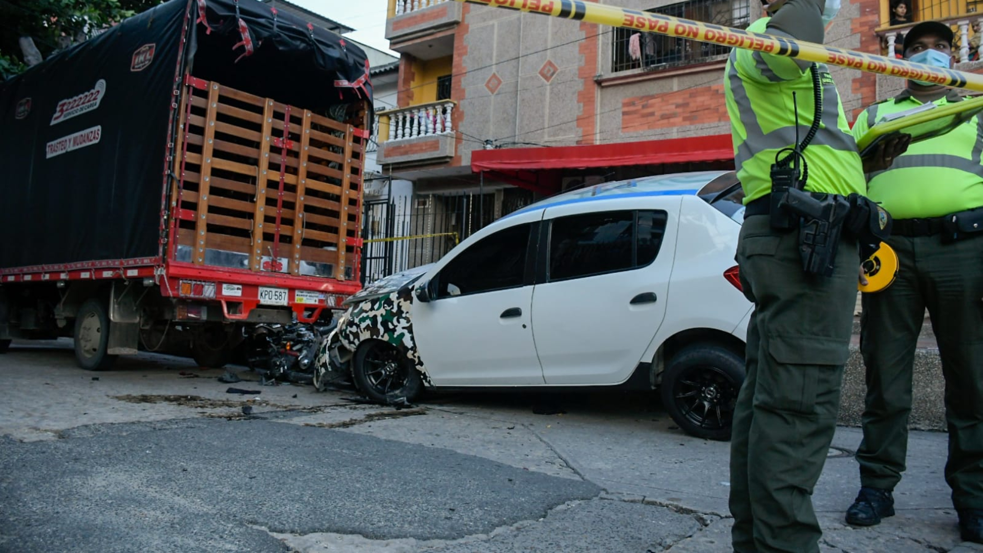 Los hechos ocurrieron a las 4:45 de la tarade en la calle 57 carrera. 41, se movilizaban en una motocicleta, son embestidos por la víctima en el vehículo particular marca Renault color blanco de placas (GTN-517).