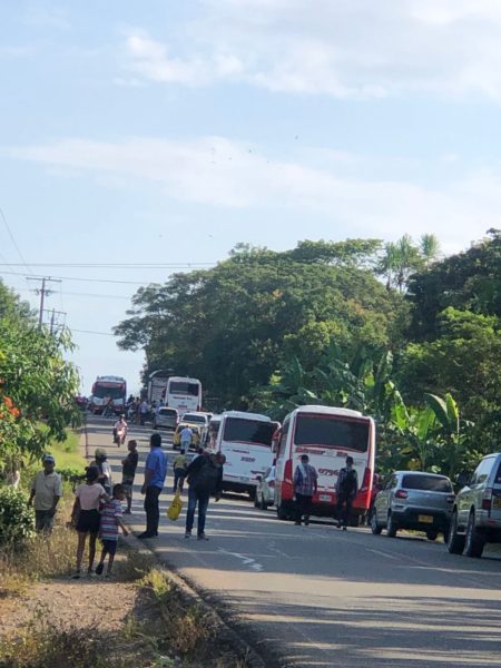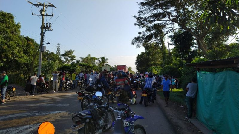Al bloqueo que ha generado un trancón con decenas de vehículos a la espera de cruzar por el sector, se sumaron las comunidades de San Isidro, Gran Esfuerzo, Nuevo Paraíso, Galilea, Salamina, El Congo, San Anterito, Nueva Ola y Los Moncholos.