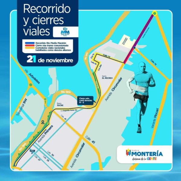 El próximo domingo 21 de noviembre, por primera vez se realizará en Montería una media maratón, evento deportivo que congregará a más de 1.000 atletas de varias ciudades del país.