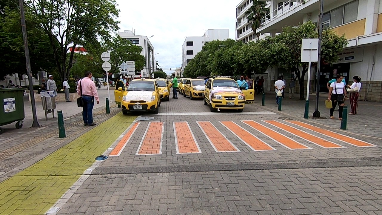 Este miércoles 7 de abril el gremio de taxistas de Montería protestó en los bajos de la Alcaldía, exigiendo garantías frente al transporte ilegal.