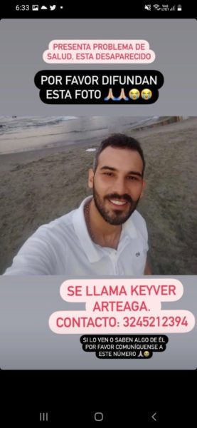 Se trata de Keyver Arnobis Arteaga Oviedo, de 29 años, quien salió de su casa alegando que iba para Planeta Rica, sin embargo, fue visto por última vez vía a Cereté.