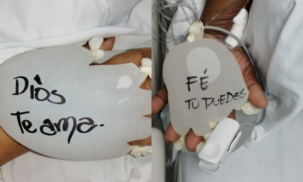 El centro médico, decidió además, escribir palabras motivadoras en los guantes como: ‘Dios te cuida, fe, salud, vida, esperanza, amor, y fuerza.