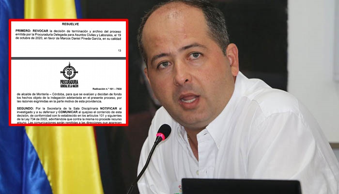 En las últimas horas se conoció que, la Procuraduría General de la Nación revocó el fallo en el que se había archivado el proceso contra el exalcalde de Montería, Marcos Daniel Pineda García.