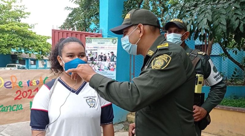 Fue así como los uniformados adscritos a Radio Policía Montería 95.5, llegaron al plantel con todos los protocolos de bioseguridad, con el fin de afianzar la confianza en los niños, niñas, adolescentes.