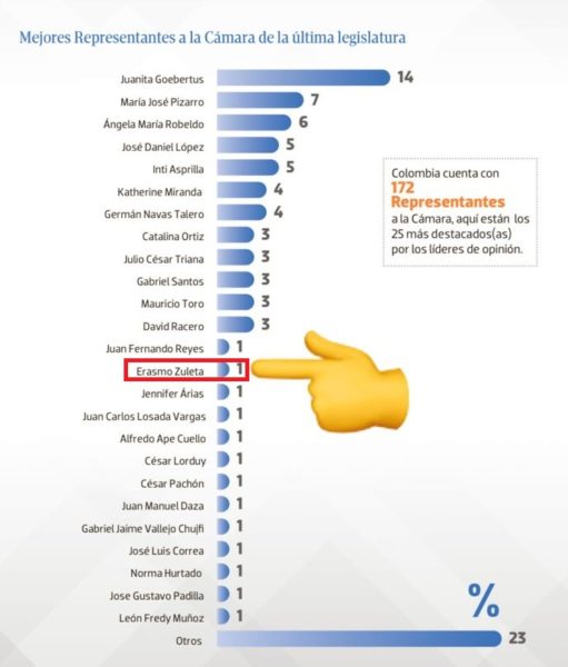El congresista Erasmo Zuleta Bechara figura en la lista de los 15 mejores Representantes a la Cámara del país.