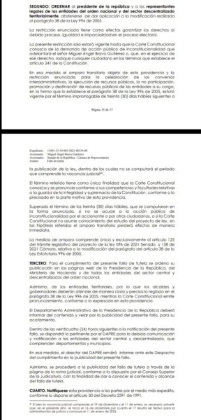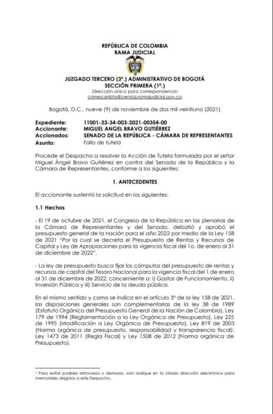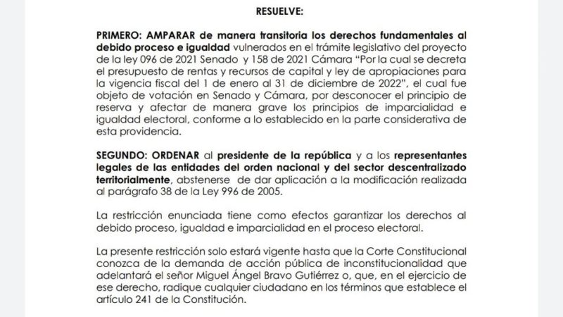 El Juzgado Tercero Administrativo del Circuito de Bogotá apeló al amparo de los derechos fundamentales al debido proceso e igualdad para prohibir que se elimine la ley de garantías.