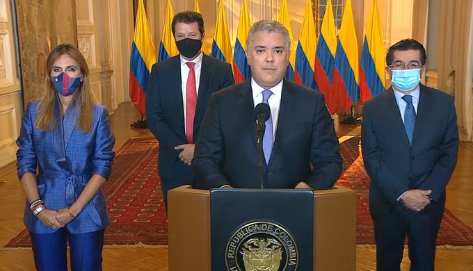 “Comenzaremos con el talento humano en salud que se encuentra en la primera línea de atención al COVID-19, a los que todos los días arriesgan su vida protegiendo a los demás”, agregó Duque.