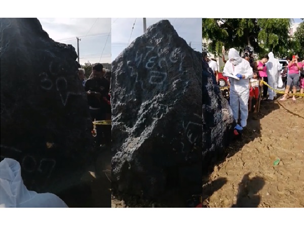 Las personas aún no salen del asombro pues hay quienes indican que todo se trataría de un meteorito, incluso hay otros que dicen que en la piedra está escrito un mensaje en otra lengua.