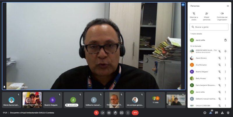 Todo un éxito fue la realización del IV encuentro virtual Antiextorsión 2021 realizando por el Gaula, el cual contó con la participación de comerciantes, docentes y líderes comunales de diferentes municipios del departamento de Córdoba.