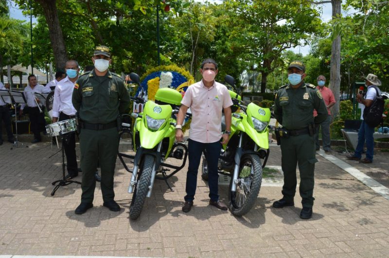 En adición, el alcalde, con el fin de brindarle mayor seguridad al municipio, le entregó a la estación de policía de San Pelayo dos motocicletas para fortalecer su parque automotor.