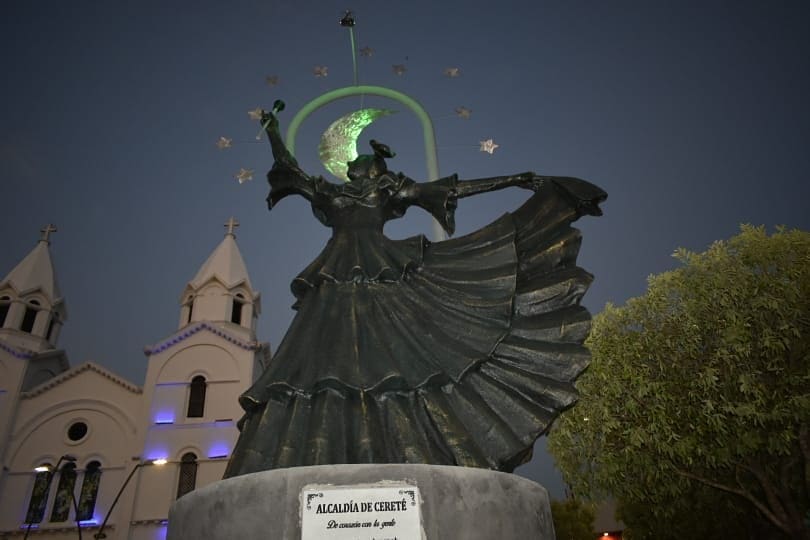 Se trata de una escultura de una bailarina con una gaita en su mano, la cual fue esculpida por los artistas Wilmer Valencia y Waldino Paternina, quienes destacaron a través de la obra los valores culturales del municipio.