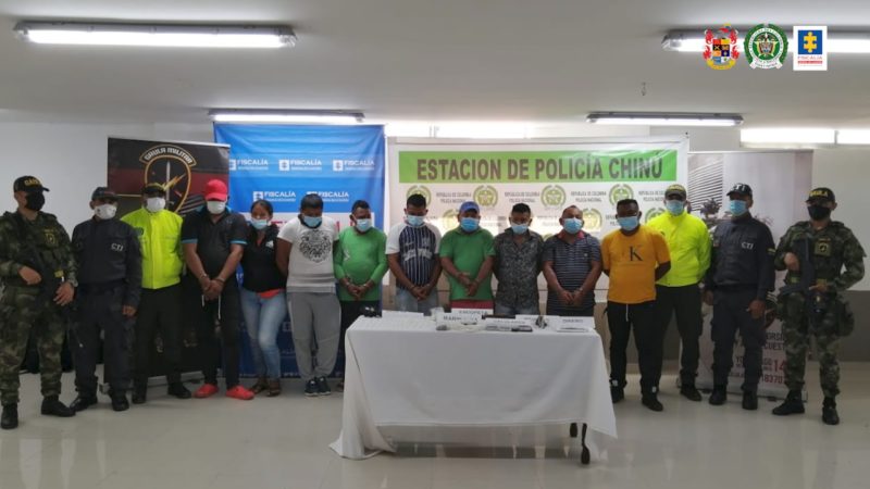 Por solicitud de la Fiscalía, un juez de garantías impuso medida de aseguramiento en centro carcelario a 9 presuntos integrantes del grupo delincuencial Los Canutos, dedicado al tráfico de estupefacientes en el departamento de Córdoba. De acuerdo con las investigaciones, este grupo tiene injerencia en los municipios de San Andrés de Sotavento y Tuchín. En diligencias de registro y allanamiento las autoridades les incautaron 4 celulares, un revólver, una escopeta, base de coca, marihuana y dinero en efectivo. Los procesados fueron imputados por delitos como concierto para delinquir agravado, tráfico de estupefacientes y porte ilegal de armas.