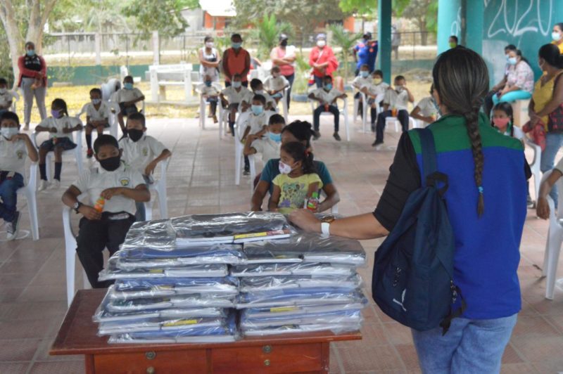 La Gestora Social de San Pelayo, Claudia García, continúa asiduamente trabajando por el bienestar de la localidad, desde el pasado mes de febrero ha recorrido varias Instituciones Educativas de la zona rural entregando kits escolares a los estudiantes más necesitados.