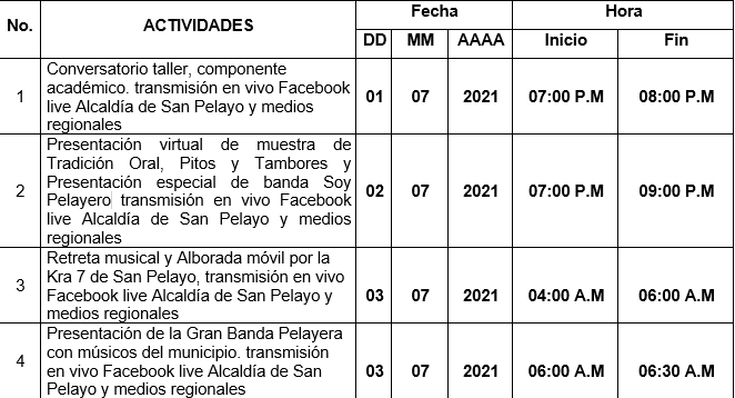 El evento cultural contará con el apoyo de la Gobernación de Córdoba, Findeter, Comfacor, Universidad del Sinú, Elías Bechara Zainúm, Record, Empresas Públicas Municipales de San Pelayo, y la E.S.E Camu San Pelayo.