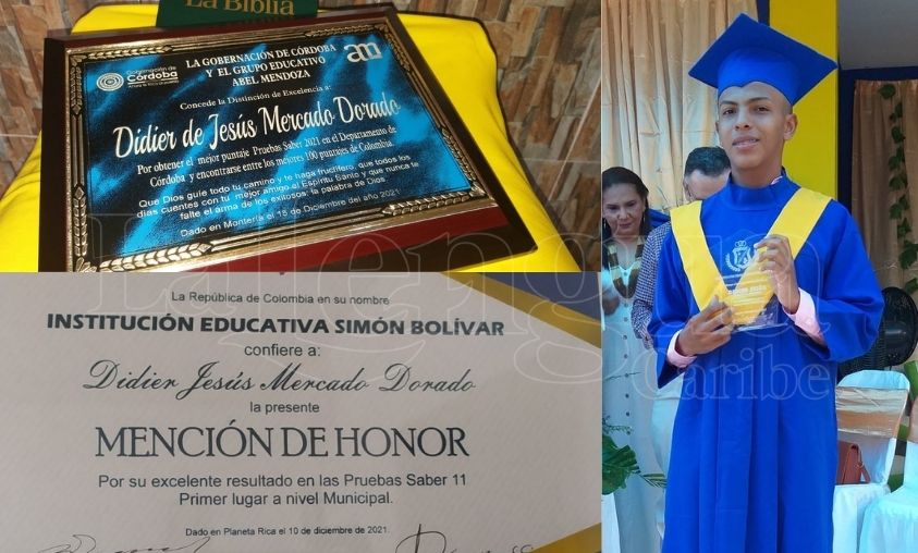 Didier Jesús Mercado Dorado es un joven de 17 años de edad que se destacó en las pruebas Saber 11 calendario A del 2021, obtuvo un puntaje de 407, logrando estar entre los mejores de Colombia.