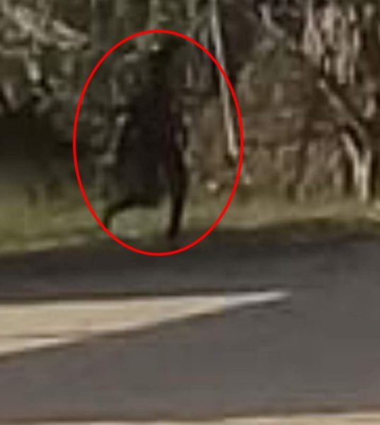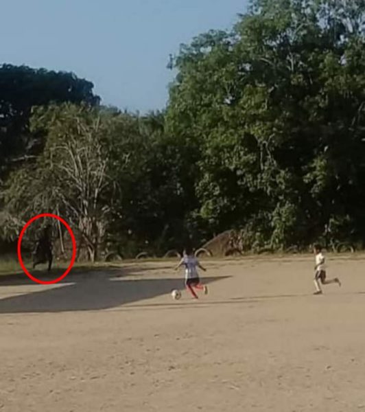 En una de las fotos que se han hecho viral en las redes sociales, se ve claramente un niño lleno de inocencia corriendo a buscar el balón y parece que la extraña silueta fuera a disputar la pelota con el menor.