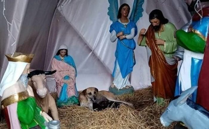 Una particular y adorable imagen le da la vuelta al mundo cibernético en las últimas horas, se trata de una perrita que dio a luz dentro del pesebre que se colocó en el parque central en Palenque, estado de Chiapas en México.