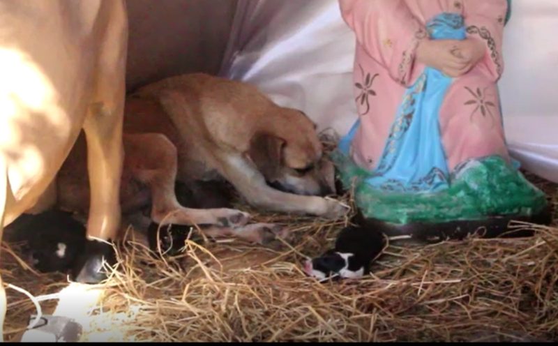 La perrita callejera de color canela se acostó a lado de la imagen de la Virgen María, hallando allí el lugar perfecto para parir y que sus crías estuvieran resguardadas, en total tuvo seis cachorros. Ante este hecho curioso, la población solicitó al gobierno municipal no sacar a la perrita, quien sólo buscó un lugar seguro para sus crías.