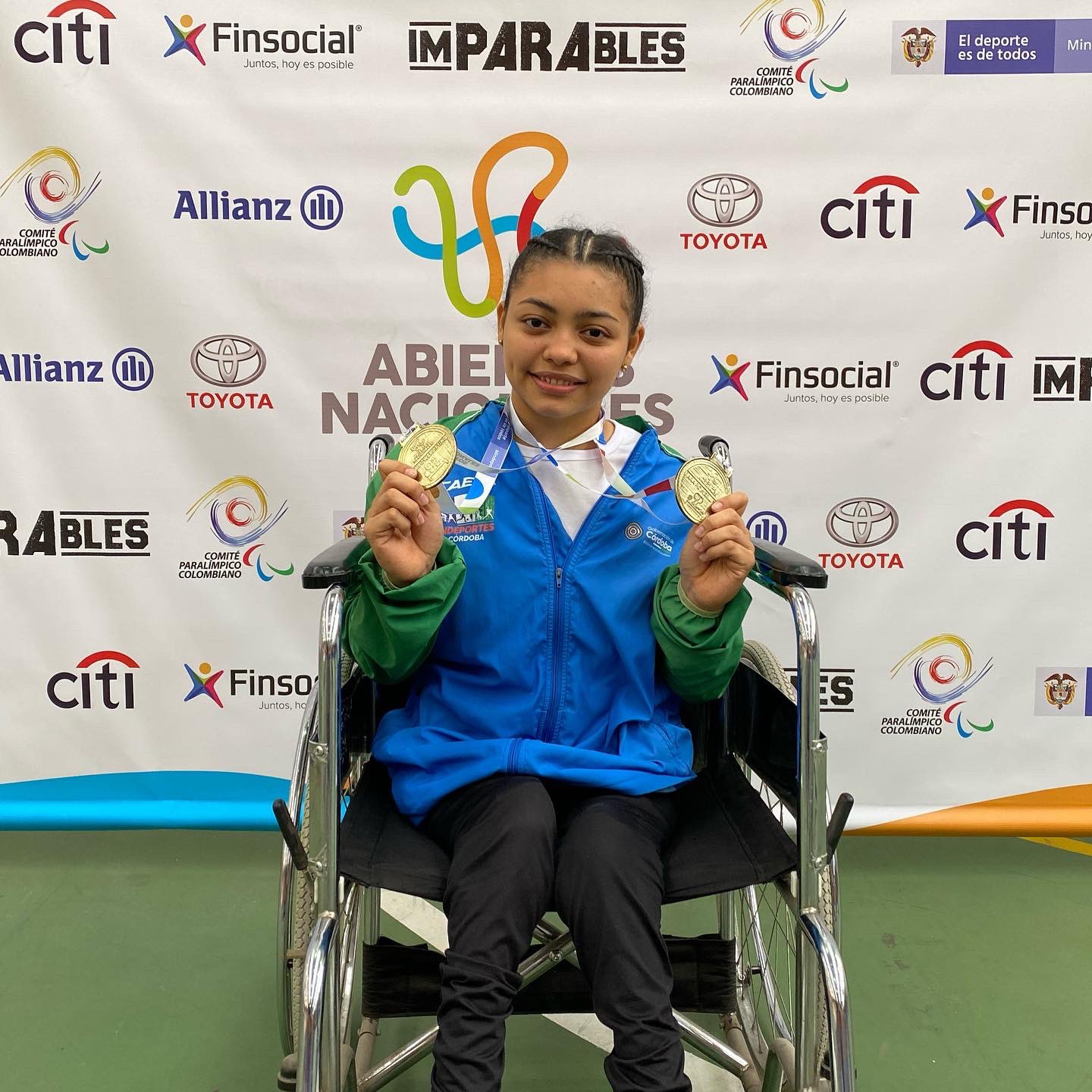 La para-atleta monteriana que tiene un diagnóstico de artrogriposis (enfermedad congénita), es la única mujer que practica este deporte en la ciudad y logró las dos preseas doradas en los 45 kg de las categorías Juvenil y Mayores.