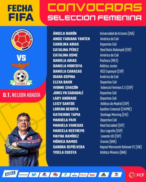 Tapias estará al lado de otra cordobesa, Leicy Santos que milita con el Atlético de Madrid. Colombia cerrará el 2022 con dos juegos ante Zambia el sábado 12 y martes 15 de noviembre en el Pascual Guerrero de Cali.